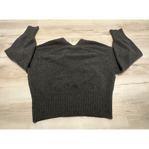 H&M Rhinestone Button Cardigan Boxy V neck Sweater Brown Gray Small Medium