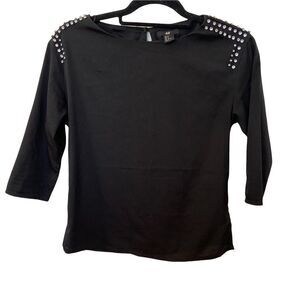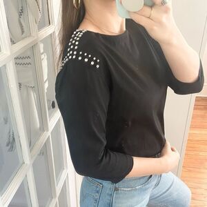 H&M Rhinestone Shoulder 3/4 Sleeve Black Blouse 2 / Small