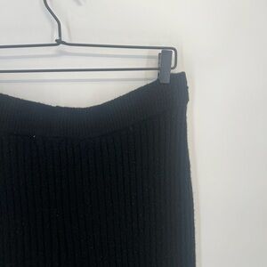 H&M Rib Knit Wide Leg High Rise Trousers In Black