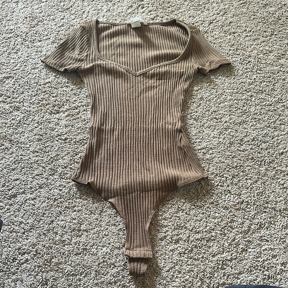 H&M Ribbed Brown Bodysuit