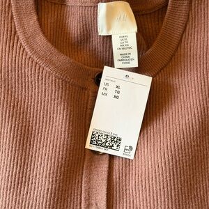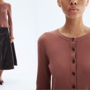 H&M Ribbed Brown Cardigan with Ruffle Hem