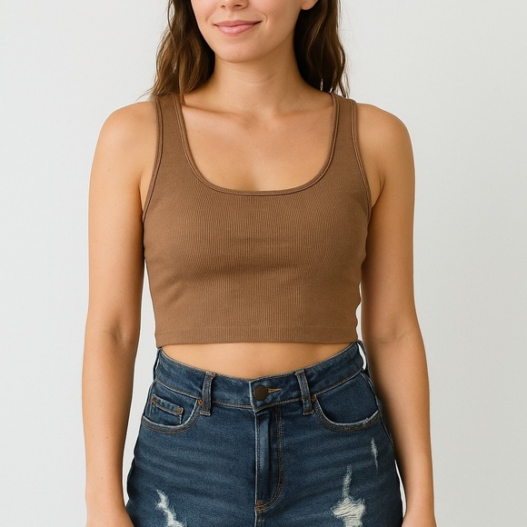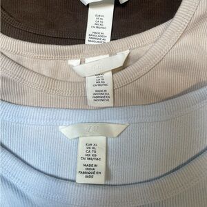 Chic brown, tan and light blue crop tops by H&M. Ribbed design. Ideal for casual wear.