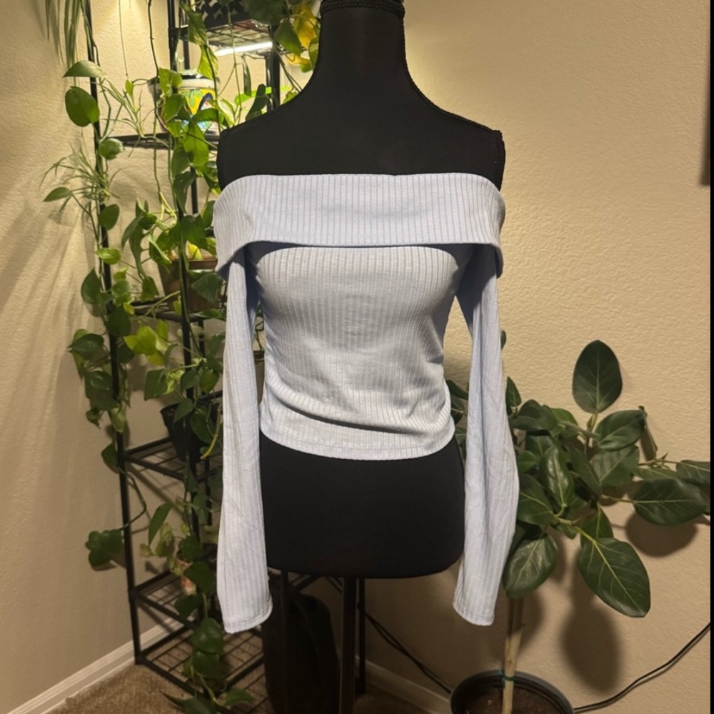 This stylish blouse from Divided features a chic off-shoulder design with long sleeves, crafted in a ribbed knit fabric for a fitted look. The white and gray color options add versatility, while the cropped length offers a modern touch.
