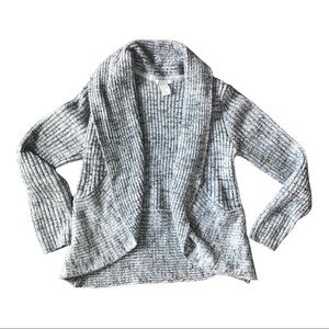 H&M Ribbed Knit Marled Shawl Collar Open Front Cardigan Sweater Heather Grey S