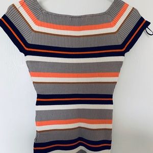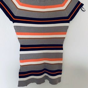 Ribbed Knit Multicolored Top. Worn once. Size S/M. Colors are orange, white, wine red, and black on a tan background. Worn once in excellent condition.