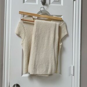 Soft ribbed knit two-piece. Cropped sleeveless top and matching midi skirt. Elegant cream color and flattering fitted silhouette. Versatile for day or evening. Top is size L (runs small though) and skirt is size M.