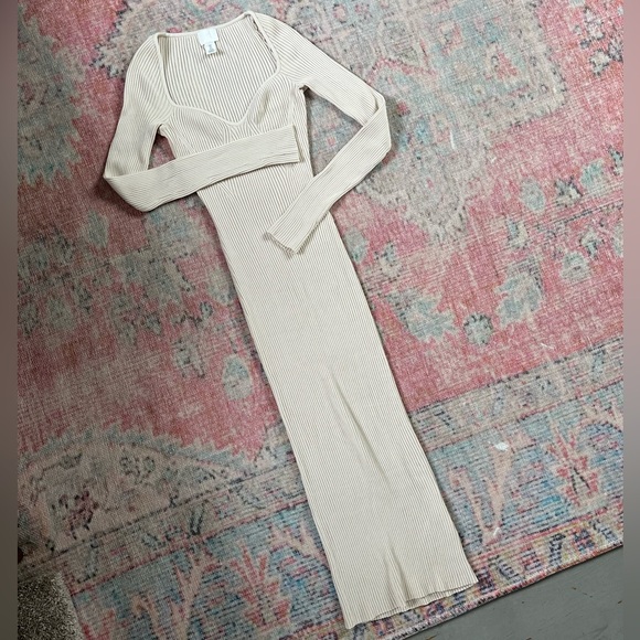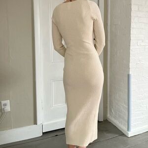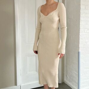 Ribbed midi dress runs TTS small. Worn once for event. Near-pristine condition.