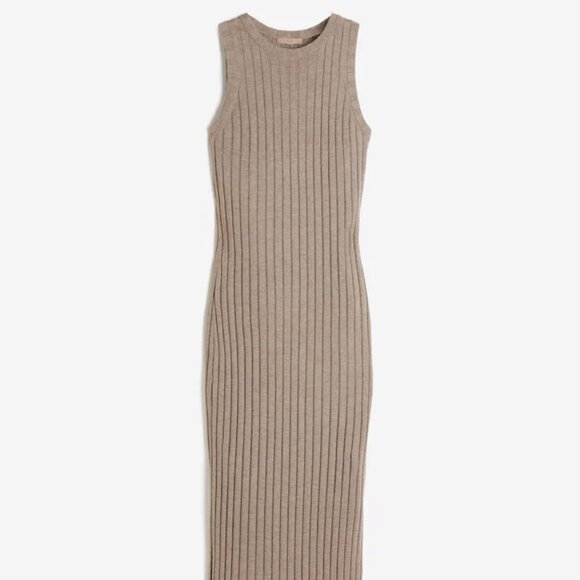 H&M Ribbed Midi Dress in Taupe No tags but never worn Could fit XS-M; stretchy but form fitting