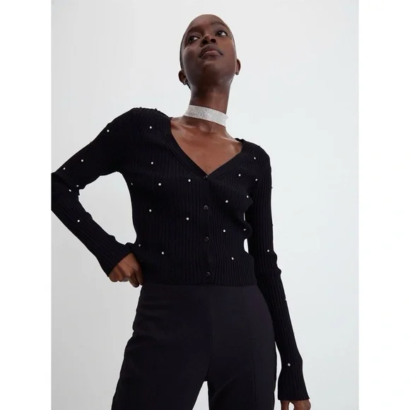 H&M Ribbed Rhinestone Cardigan