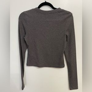 Super cute ribbed sweater slightly cropped. Color is dark grey. In great condition!