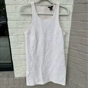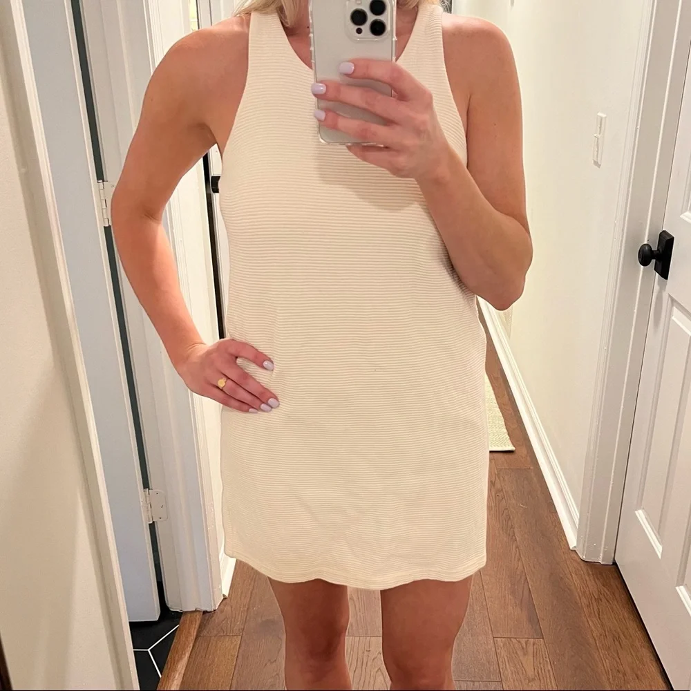 Creamy white ribbed dress with racerback style. Hidden zipper closure in back.