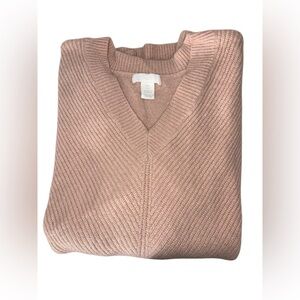 H&M Ribbed V-Neck Long Sleeve Soft Sweater in Powder Pink Size Small.