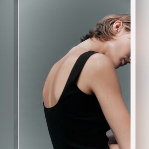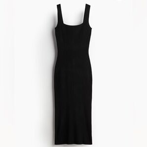 Fitted, calf-length dress in a rib knit. Wide shoulder straps and a square neckline at front and back.