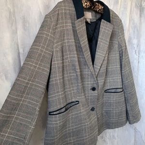 H&M+ Riding Coat Style Blazer with front slit pockets and back pleat detail. Contrast collar and piping add that sophisticated equestrian look. Very little stretch in arms. EU 54. US 24.