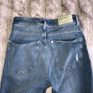 These jeans have literally only been worn once or twice. They are in very good condition and have cute little ripped designs at the bottom. I would say they are really trendy and maybe would pair them with a cropped tank in the summer, or a sweater in the winter. They are just a bit too long for me because I have kind of short legs. They are a 26 but fit like a 25