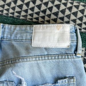 “Mom jeans”. Worn twice. Small stain on white tag on the back of jeans (see pictures) size 8 but fits like a 6