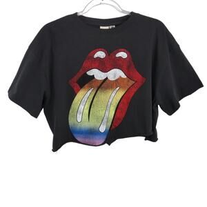 H&M Rolling Stones Graphic Crop Top Large Retro Rainbow Logo Crop Band Tee