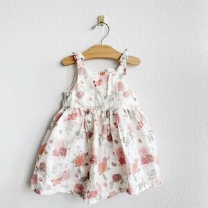 H&M toddler romper in white with floral prints. Sleeveless and snaps at the bottom. Lightweight fabric. Only worn once. Size 3T.