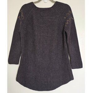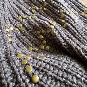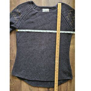 H&M Round Neckline High Low Knit Sweater with Studded Detail M Grey