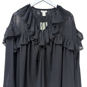 H&M Ruffle Blouse Black XS Oversized Chiffon Peasant Poet Flowy Top NWT