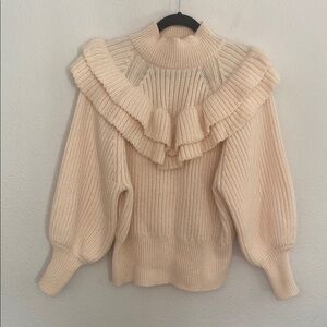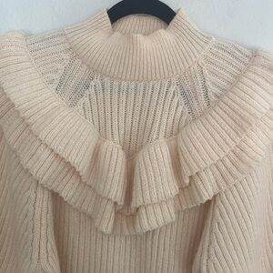 H&M Ruffle Chunky Knit Mock Neck Sweater Cream Ivory Medium