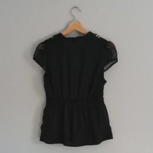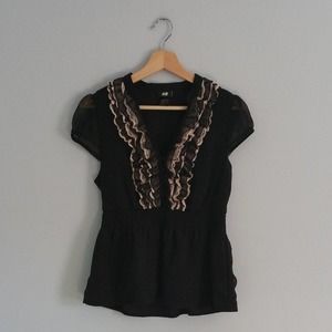 H&M Cap-sleeve shirt with buttons halfway down and ruffles around the collar to the waist that is banded. In excellent condition (no stains, no rips or damage and comes from a smoke and pet free environment).