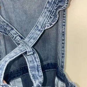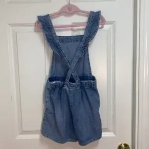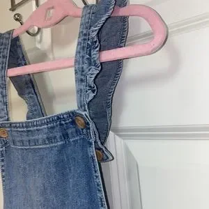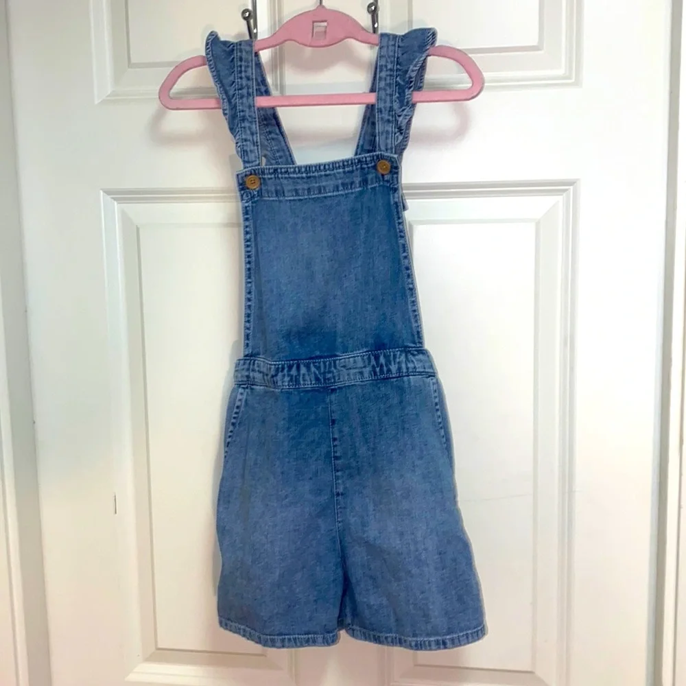 H&M Ruffle Overall Shirts for girls in a size 8-9. Elastic stretch waist and, super soft denim, adorable and 2 button adjustable overall straps. 2 side slip pockets. Fabulous condition.
