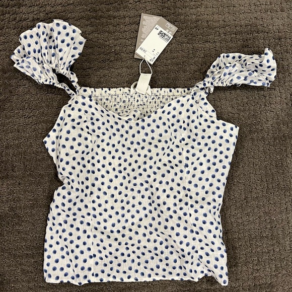 H&M Ruffle Sleeve Top Blue Polka Dots Size M NWT #preppy #eastcoast