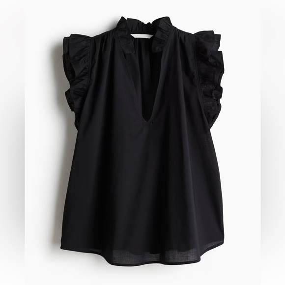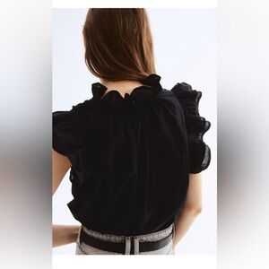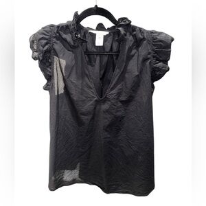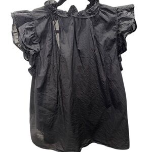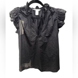 Chic charcoal top with stylish ruffles. Ideal for versatile wear. NEVER WORN!!! No damages just needs to be lint rolled and steamed.