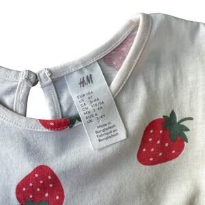 H&M Ruffle Trimmed Strawberry Print Dress, Size 4T, Creme