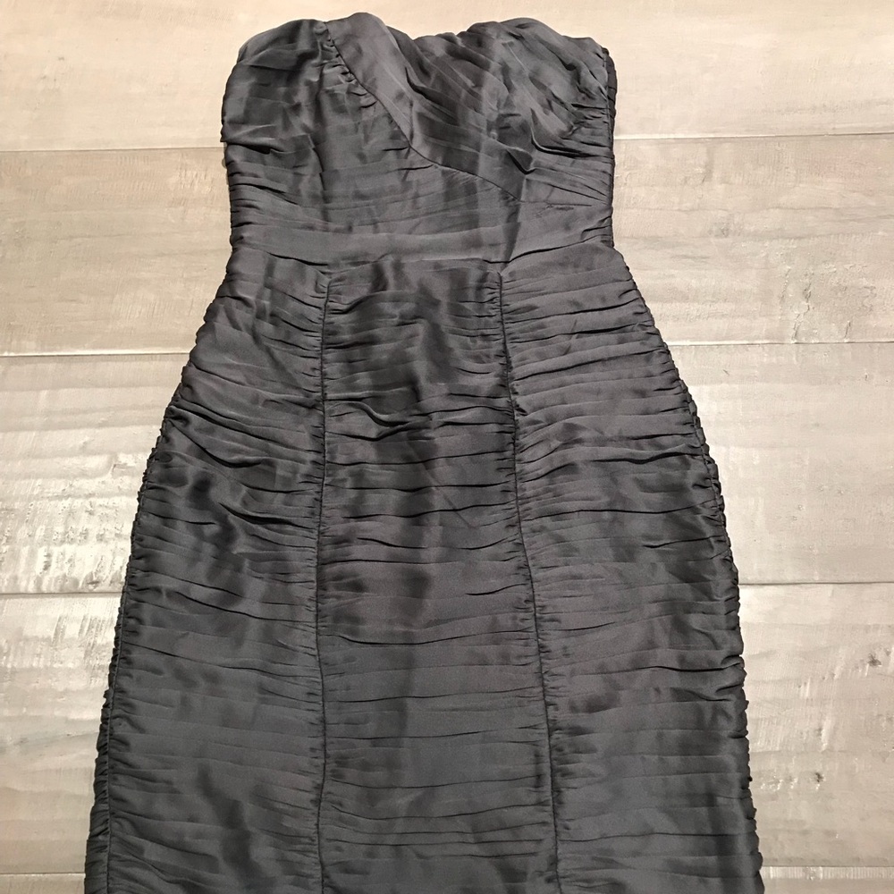 Brand new with tags still attached H&M dress with ruffles. Color is a dark grey. Size 4.