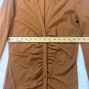 H&M Rust Camel Ruched Button Front Long Sleeve Ruched Dress