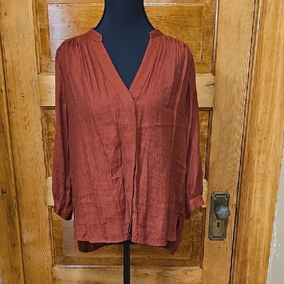 H&M Rust Relaxed Blouse with 3/4 Sleeves and Mandarin Collar 8