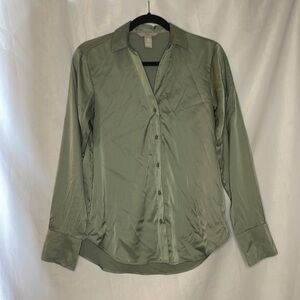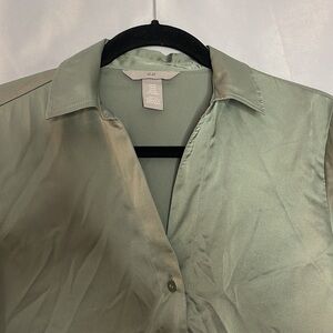 H&M SATIN GREEN BUTTON DOWN (X-Small)