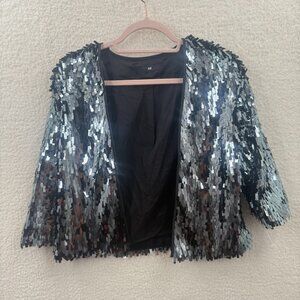 H&M SILVER GREY MIRRORED CABARET PARTY GLITZY Evening Jacket Cardigan