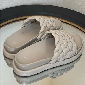 Light tan/ grey-ish H&M slides with braid detail • barely worn