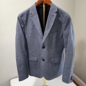 H&M BLUE/GREY SMART CASUAL SINGLE BREAST JACK WITH BROWN PATCH ELBOWS MEN SIZE XL