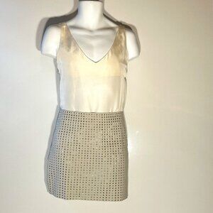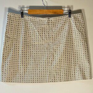 H&M SZ 18 NWT Ecru color studded faux leather mini skirt Artsy Party Club Disco