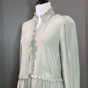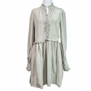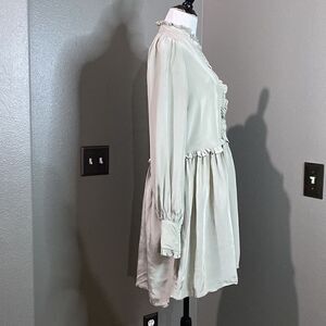 H&M Safe Green Button Down Long Sleeve Mini Dress Mini Ruffles