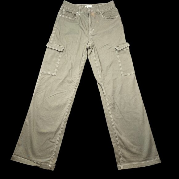 H&M Sage Green Cargo Utility Pants Contrast Stitching Pockets Womens Size 6