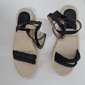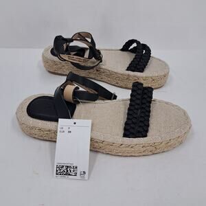 H&M Sandals 38 EU 7 US Braided Detail Espadrilles Platform Ankle Strap Black