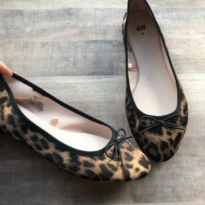 H&M Satin Like Almond Toe Flexible Leopard Flats