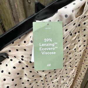 H&M Satin Polka Dot Split Side Cream Midi Skirt NWT Size 12