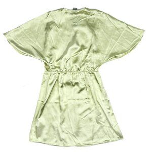 H&M Satin Wrap-Front Mini Dress Recycled Polyester Lime Green-Yellow Sz S - NWT