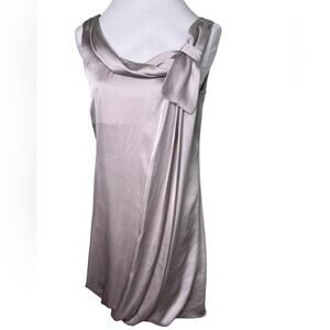 H&M Satiny Bubble Hem Dress Bow Drape Sleeveless Light Grey Silver Dress Size 8