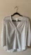 EUC H&M Semi Sheer V Neck Ivory & Gray Size L 23” inches pit to pit Waist 23” inches flat Length 24” inches in front 26.5” inches in back Biceps 6” inches flat 100percent polyester