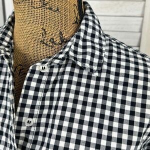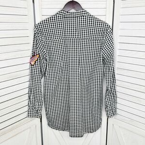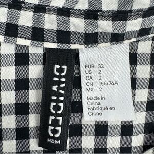H&M Sequin Appliqué Gingham Check Button Front Shirt Black White Size 2