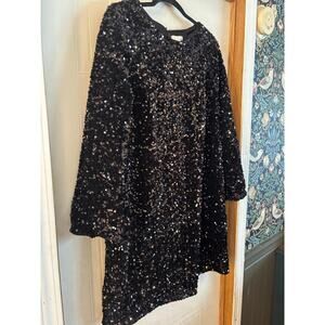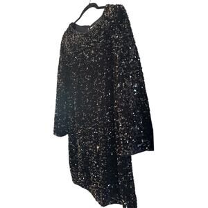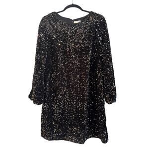 H&M Sequin Covered Black Shift Mini Dress Size Large Long Sleeve Party