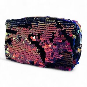 Keep your makeup organized and glamorous with our sequined and velor cosmetic bag! Made from high-quality materials, this bag features a compact 6x4 size that is perfect for on-the-go touch-ups.