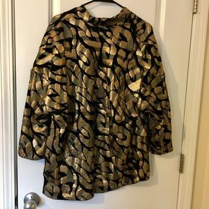 Unlined, amazing metallic and sequin pattern on a black velvet background. Truly one of a kind type piece that gets tons of compliments.